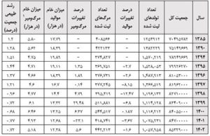 جدول نرخ موالید از ۱۳۸۵ تا ۱۴۰۲ (سایت تابناک)